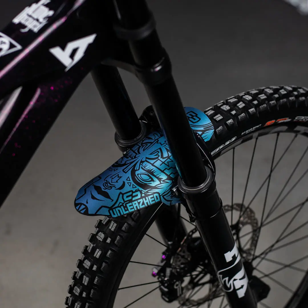 Der Unleazhed M01 ist größer als die klassischen Mini Mudguards und sorgt für noch mehr freie Sicht auf dem Trail ohne dabei unangenehm aufzufallen.