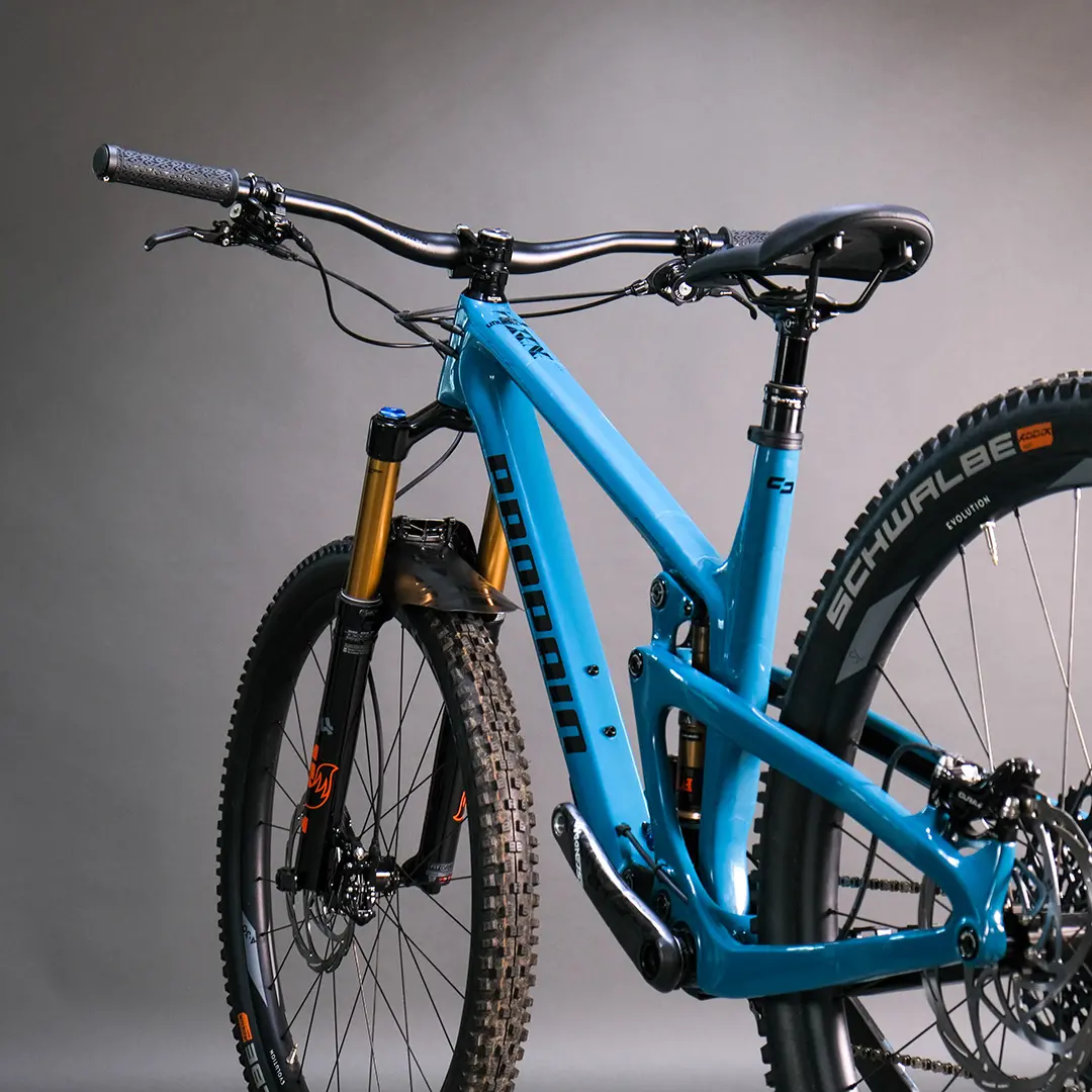 Das Unleazhed M02 MTB Schutzblech ist der perfekte Begleiter für dein Mountainbike! Unser Anspruch ist es, höchste Qualität und Funktionalität aus Deutschland zu liefern. Das äußerst stabile Mudguard M02 hebt sich durch seine moderne Herstellungsweise stark von den Mitbewerbern ab. Durch die Montage mit Klettbindern, ist eine einfach und schnelle Montage und Demontage möglich. Generell besteht der M02 aus einem 100 % recyceltem Material und wird zusätzlich im Inneren aufgeschäumt um noch mehr Material zu sparen! Durch diese Sandwichkonstruktion ist dieses Mudguard eines der leichtesten Mountainbike Schutzbleche in dieser Größe am Markt. Mit den beiliegenden Federgabel-Lackschutzstreifen, sorgen wir auch für den Schutz deiner Gabel. Die ausgezeichnete Schutzwirkung konnte auch im Test von E-MTB News nachgewiesen werden. Stabil, leicht, ausgezeichnete Schutzwirkung, langlebig und recycelt!   Überzeuge dich selbst! Unleazhed GmbH, Premium Qualität Made in Germany Greenfacts Hergestellt aus 100% recyceltem Material Ressourcensparend produziert auf modernsten Maschinen. Damit erreichen wir eine CO2 Einsparung von 1,871kg pro Mountainbike Schutzblech bei einer Produktionsmenge von 25.000 Mudguards Kurze Lieferkette, MADE in GERMANY Key Features Vollwertiger Mudguard für maximalen Schutz vor Dreck und Steinschlägen Innovativer Wasserkeil© verhindert das Aufsteigen von Wasser und Schmutz an der Spitze des Mudguards Einzigartiges Material - Sandwichbauweise mit geschäumtem Kern Steif und leicht Geeignet für Mountainbikes mit Federgabel Laufradgrößen von 24" bis 29" Maximale Reifenbreite: 3,0" Lieferumfang: 1x unsplash M02, 4x Klettbinder , 3 Lackschutzstreifen Nicht geeignet für Fat Bikes oder LEFTY Gabel Engineered and designed in Germany Spezifikationen M02 Gewicht: 98 g Länge: 508 mm Breite Oben: 83 mm Höhe Mitte: 150 mm Farbe: ultimate black matt and glossy Angaben zur Produktsicherheit entsprechend GPSR Hersteller: unleazhed GmbH Dresdner Str. 313, 01705 Freital, Germany www.unleazhed.com E-Mail: info@unleazhed.com