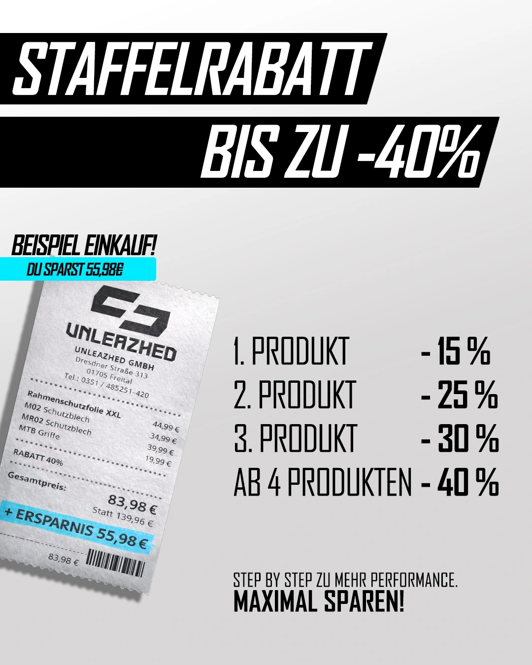 Ein gutes Preis-Leistungs-Verhältnis ist uns wichtig, so gibt es bei uns so viel Rahmenschutz, dass es auch wirklich für dein Bike reicht, ohne dass du nochmal etwas nachkaufen musst!