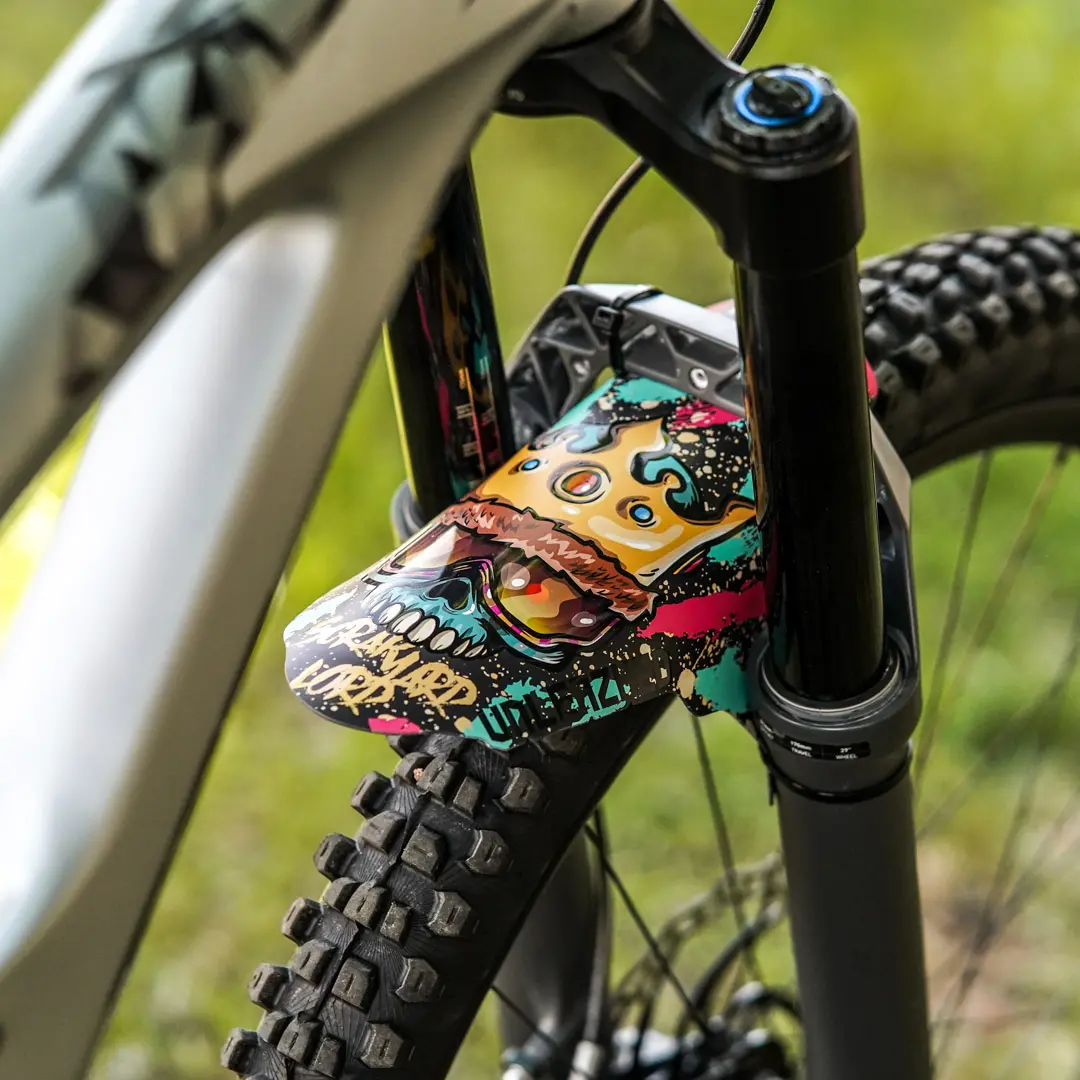 The Unleazhed M01 is larger than the classic Mini Mudguards and provides even more clear visibility on the trail without being unpleasant to look at.