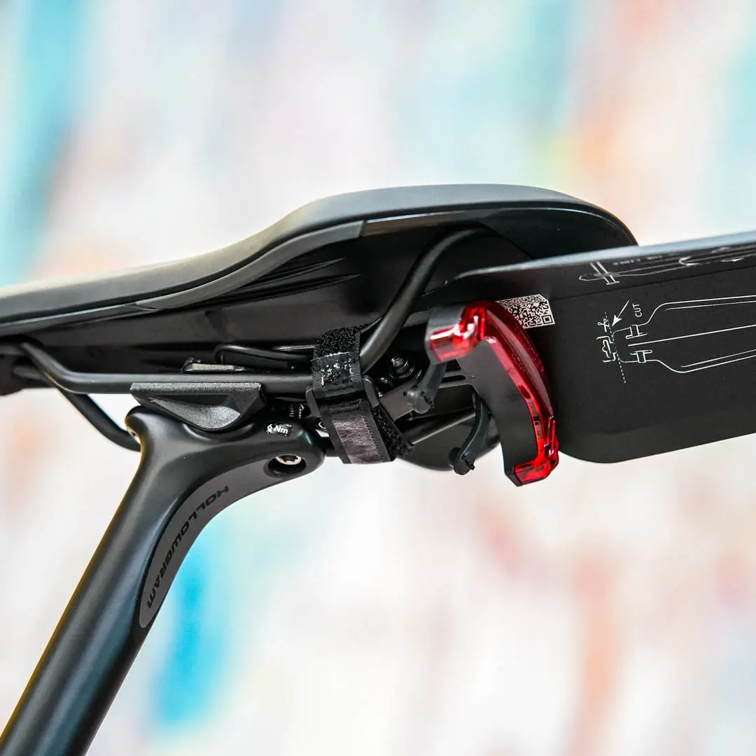 The thoughtful shape of the rear mudguard, combined with the easy installation by a hook and loop strap, we can achieve a great integration into the bike design.