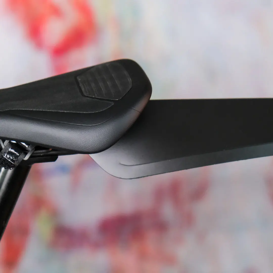 The thoughtful shape of the rear mudguard, combined with the easy installation by a hook and loop strap, we can achieve a great integration into the bike design.