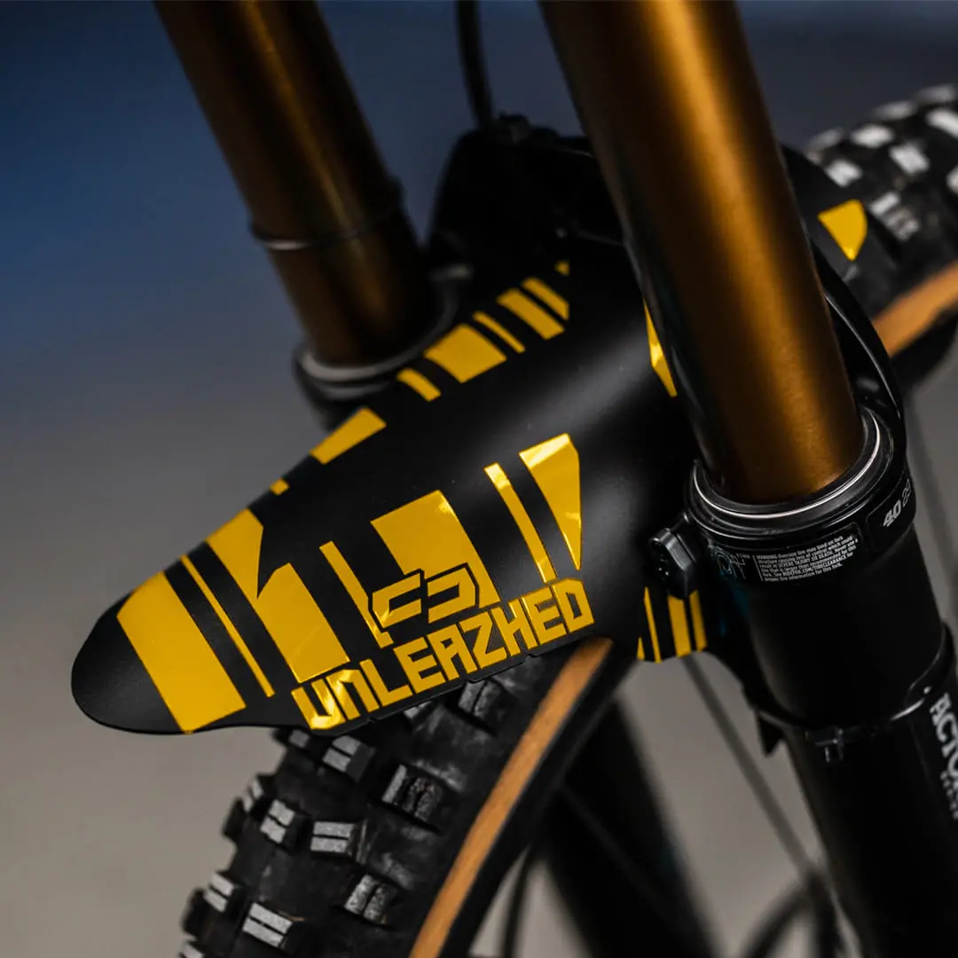 The Unleazhed M01 is larger than the classic Mini Mudguards and provides even more clear visibility on the trail without being unpleasant to look at.