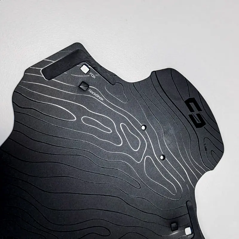 - Deep-drawn sides protect the suspension fork.