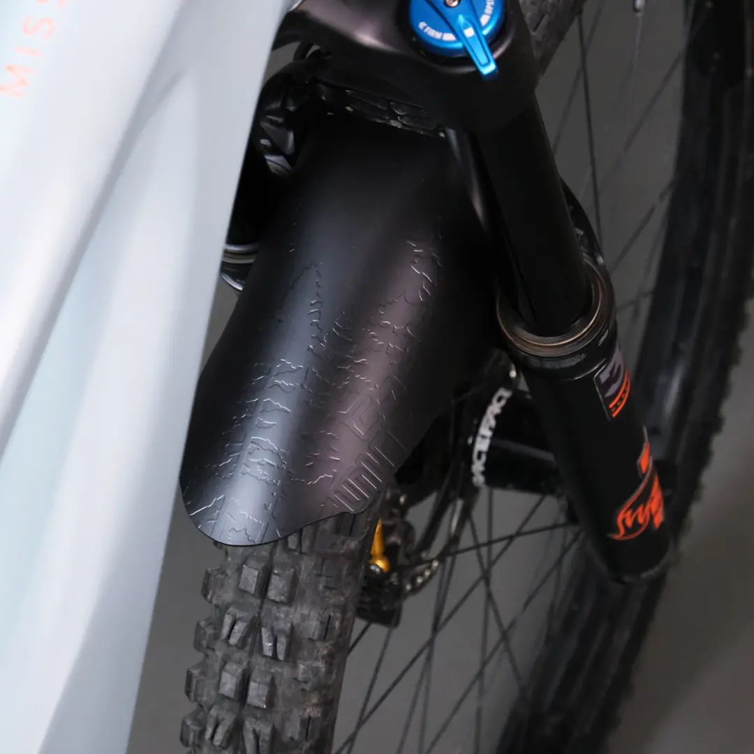 The Unleazhed M01 is larger than the classic Mini Mudguards and provides even more clear visibility on the trail without being unpleasant to look at.