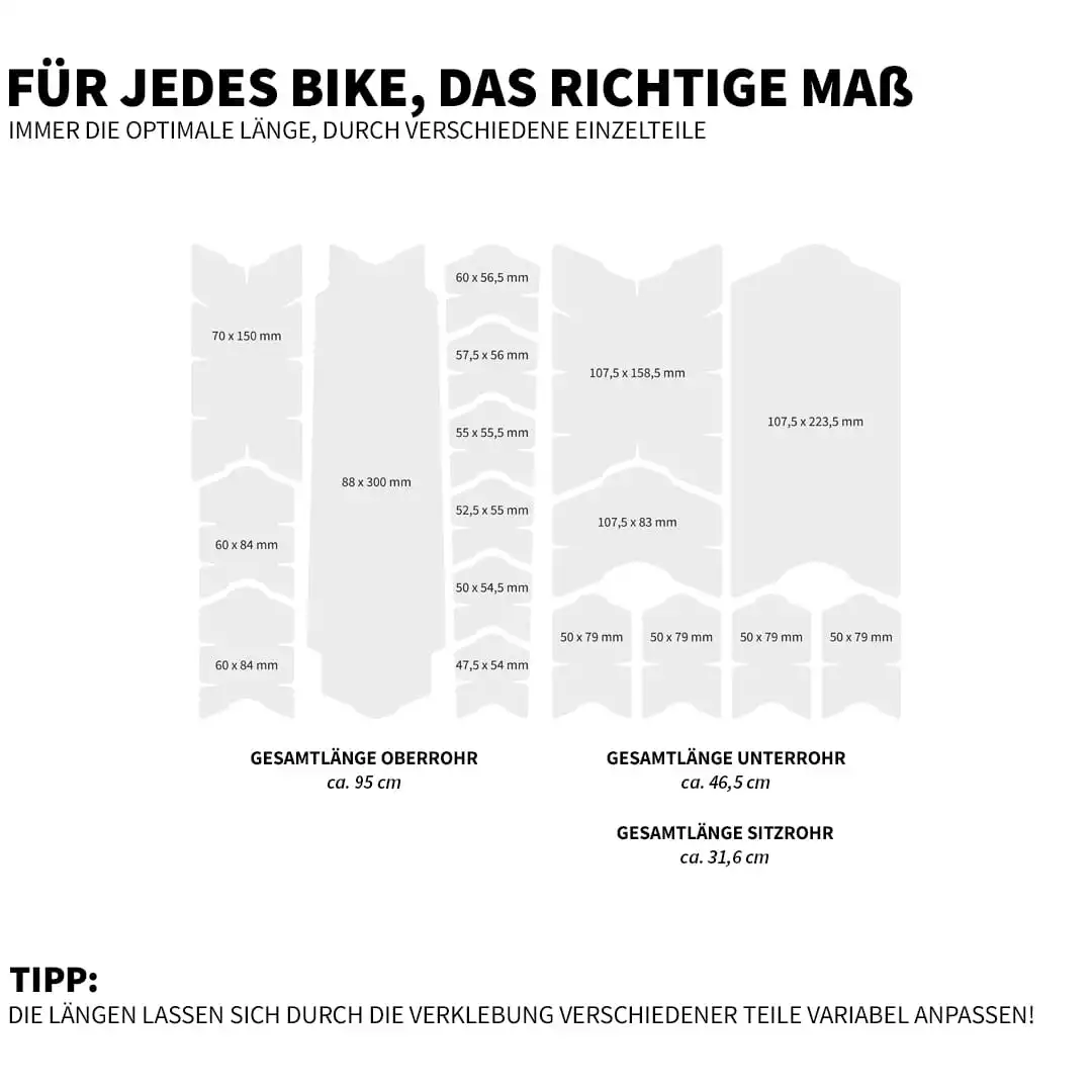 A good price-performance ratio is important for us, so there is so much frame protection that it is really enough for your main frame (top and down tube)!