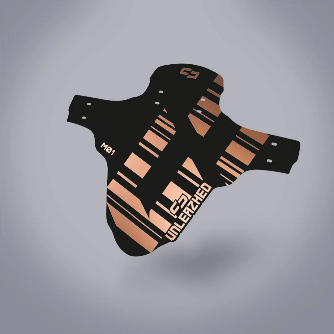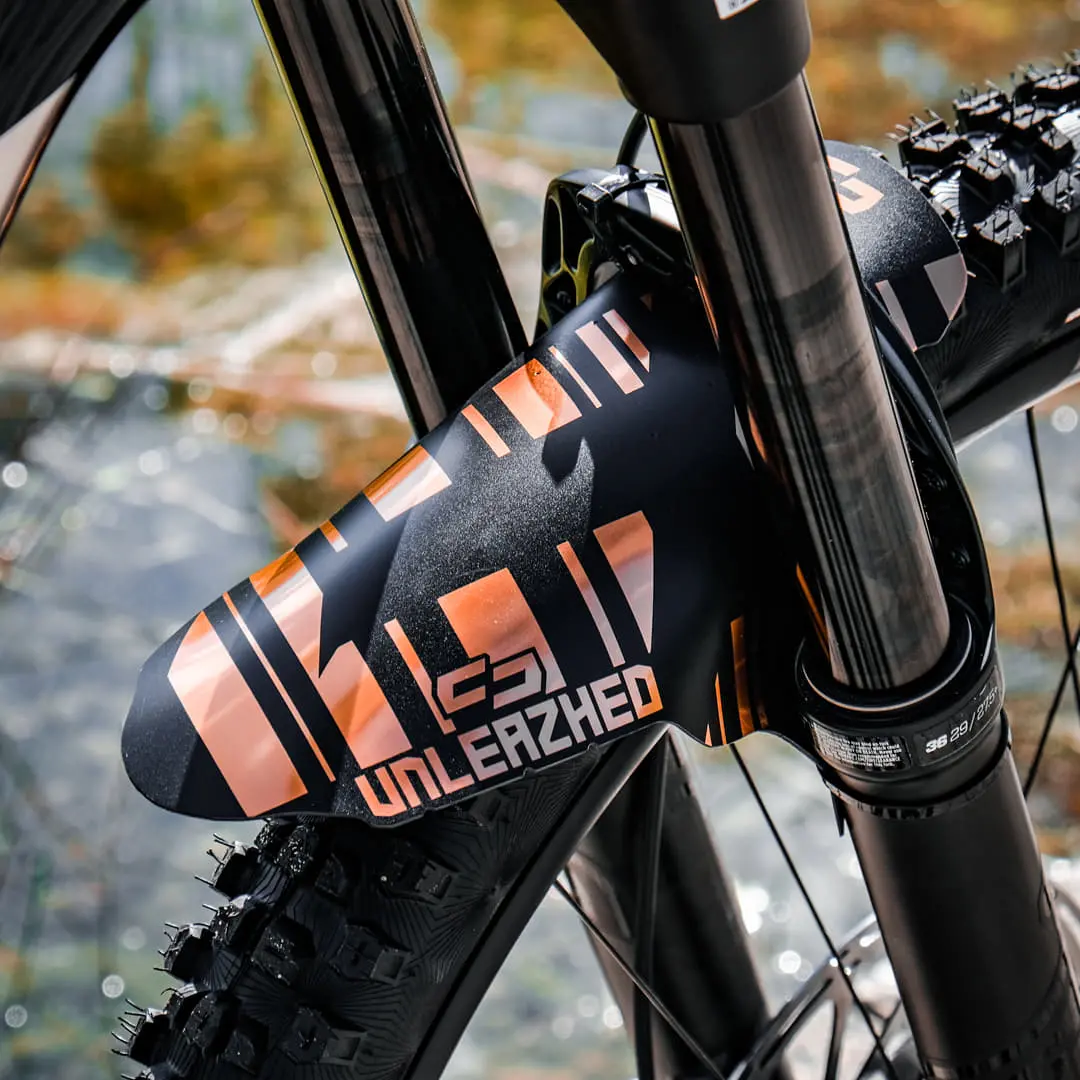 The Unleazhed M01 is larger than the classic Mini Mudguards and provides even more clear visibility on the trail without being unpleasant to look at.