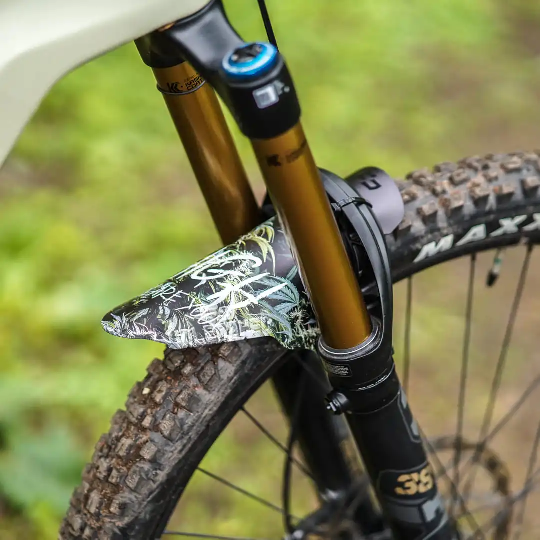 The Unleazhed M01 is larger than the classic Mini Mudguards and provides even more clear visibility on the trail without being unpleasant to look at.