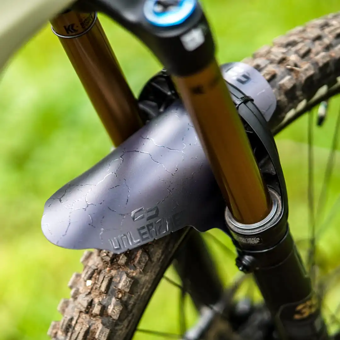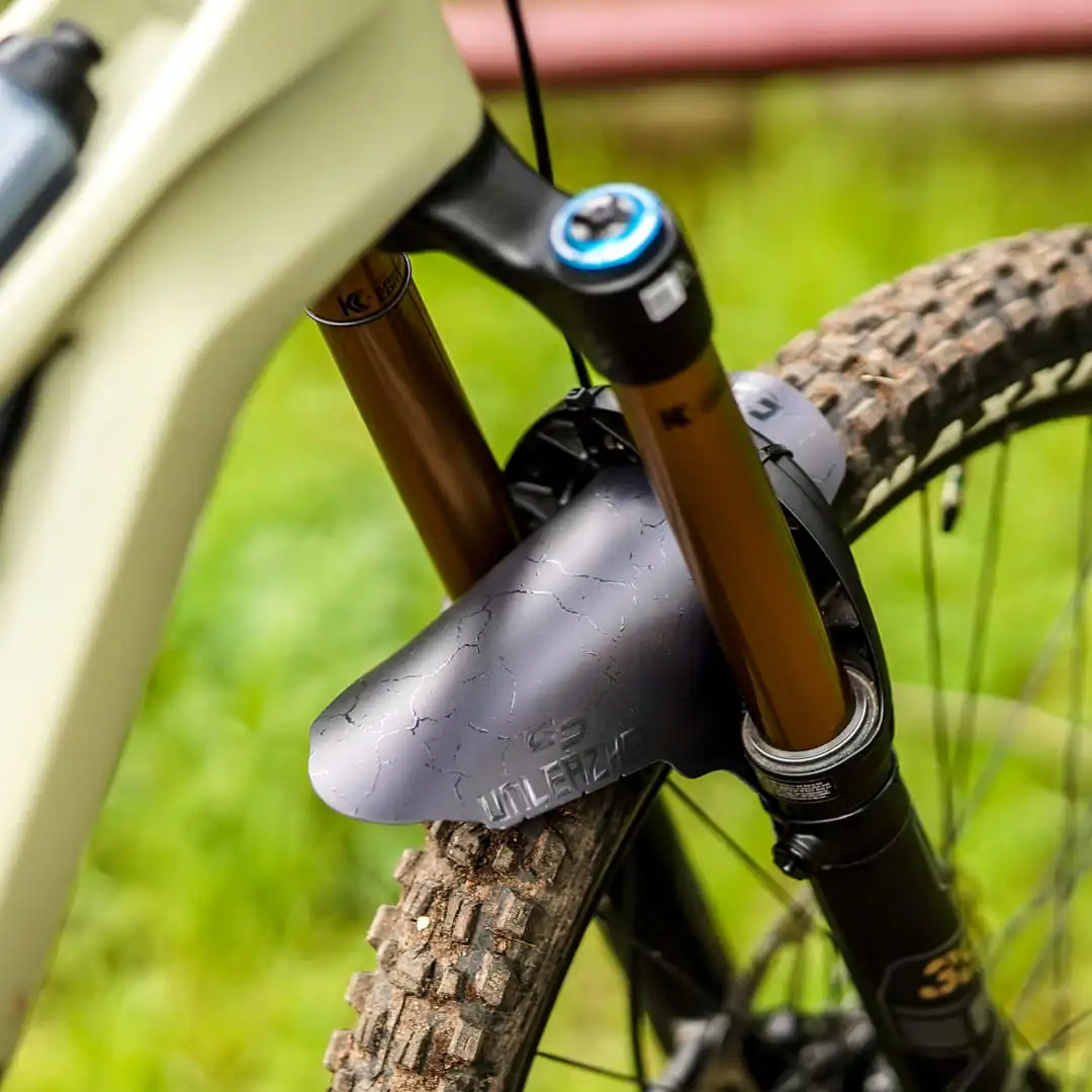 The Unleazhed M01 is larger than the classic Mini Mudguards and provides even more clear visibility on the trail without being unpleasant to look at.