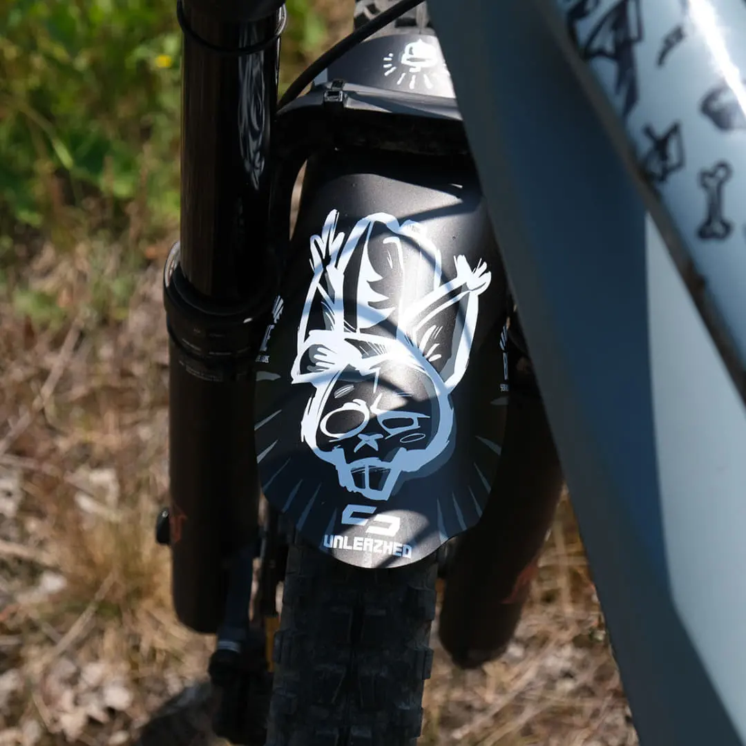 The Unleazhed M01 is larger than the classic Mini Mudguards and provides even more clear visibility on the trail without being unpleasant to look at.